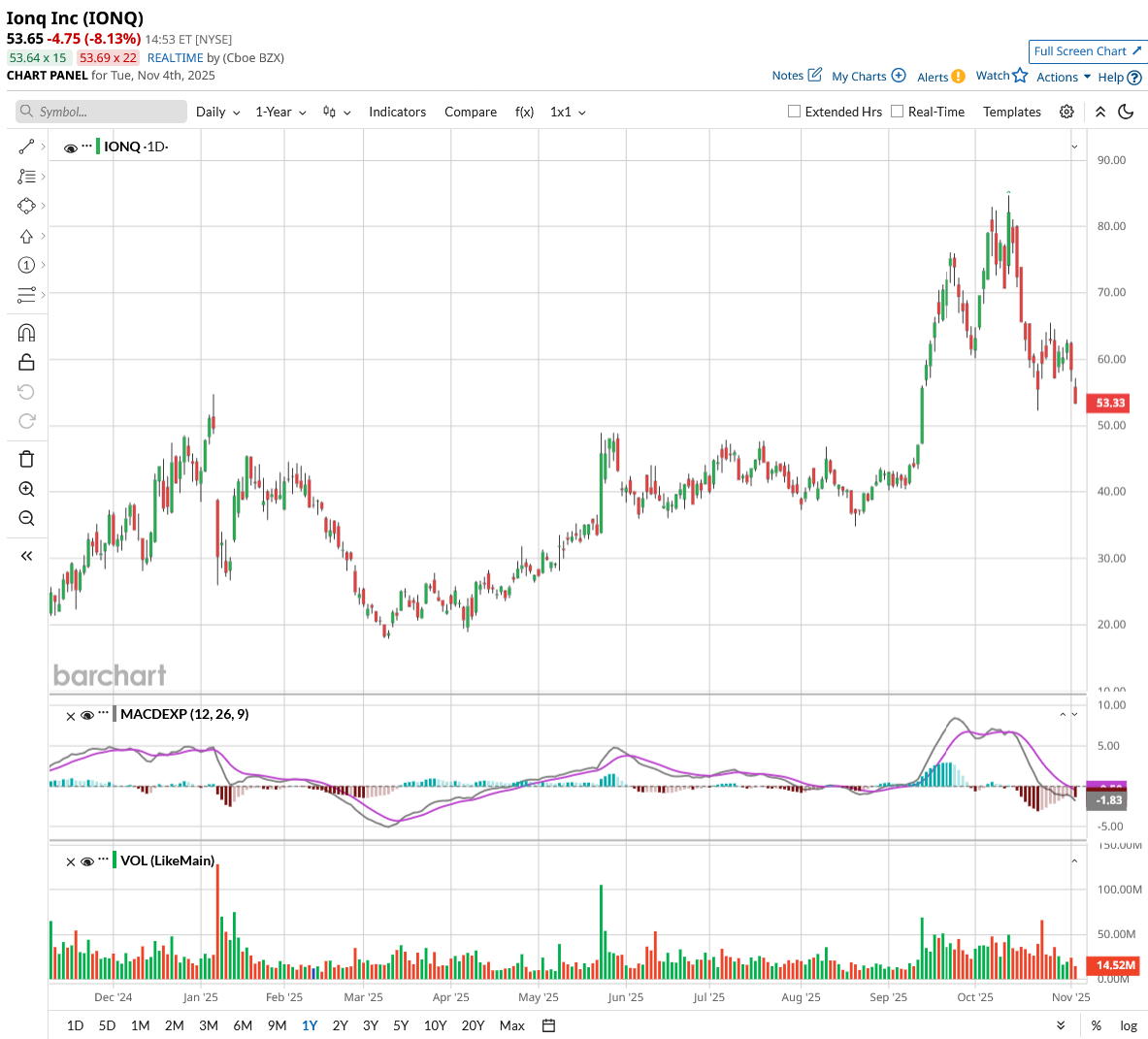IONQ stock has almost tripled investor returns in the last 12 months and is expected to report its Q3 results tomorrow, Nov. 5, which will be a key driver of shares in the near term. Analysts tracking the quantum computing stock forecast sales to grow to $27 million in Q3 of 2025, up from $12.4 million in the year-ago period. Its loss per share is forecast to expand to $0.44 from $0.24 in the previous year.