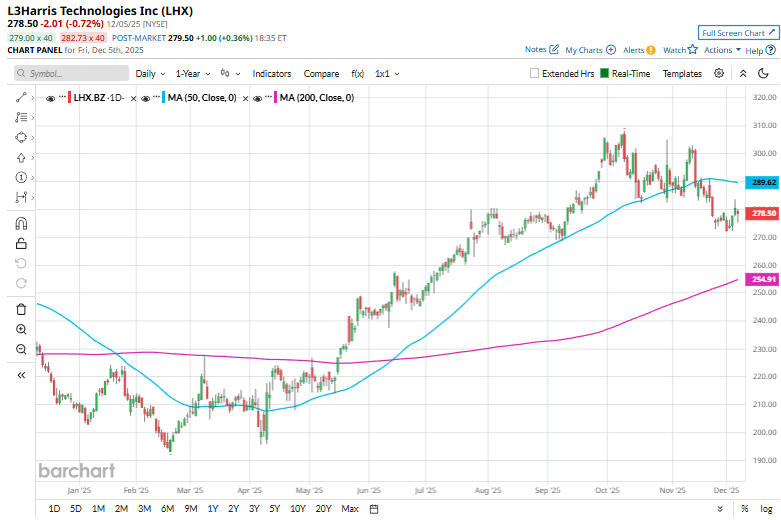 LHX stock has been trading above its 200-day moving average since mid-May and has dipped below its 50-day moving average since mid-November.