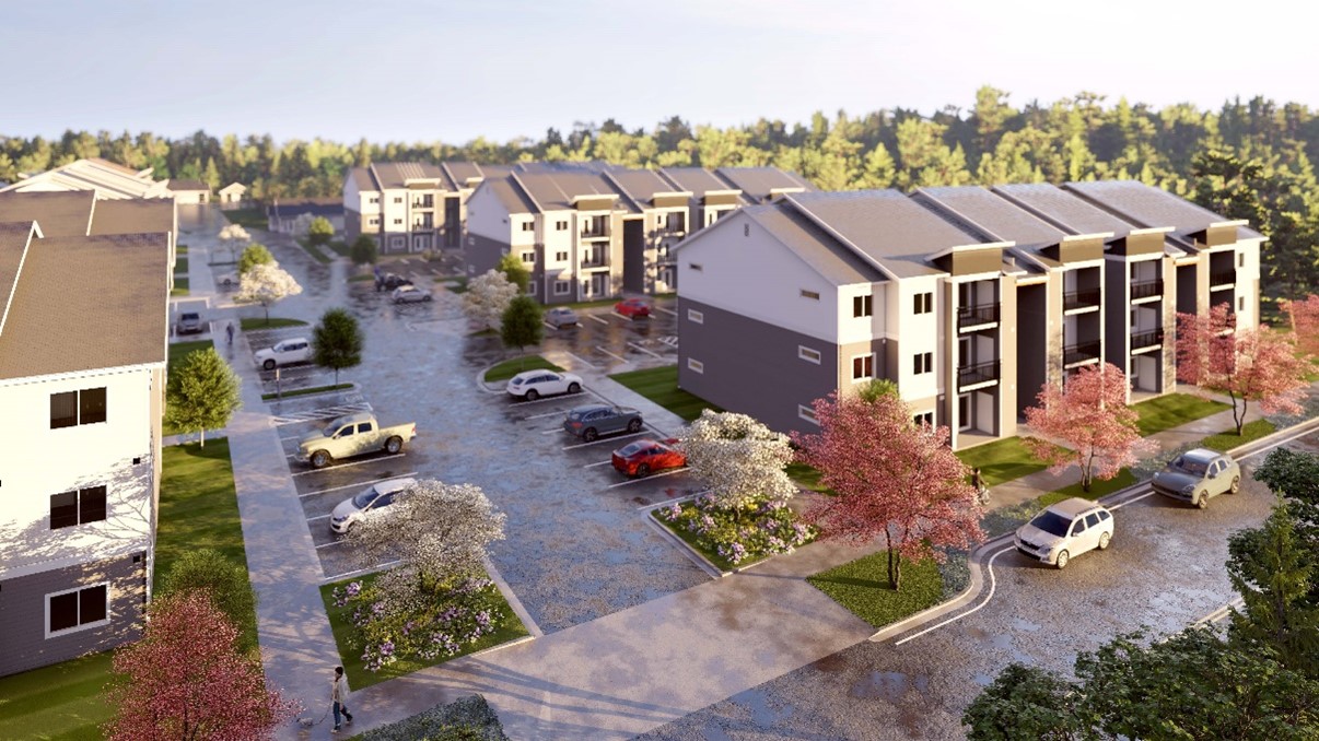 Rendering by Ross Deckman & Associates of the future Bridge View Trail apartments in Port Orchard, WA