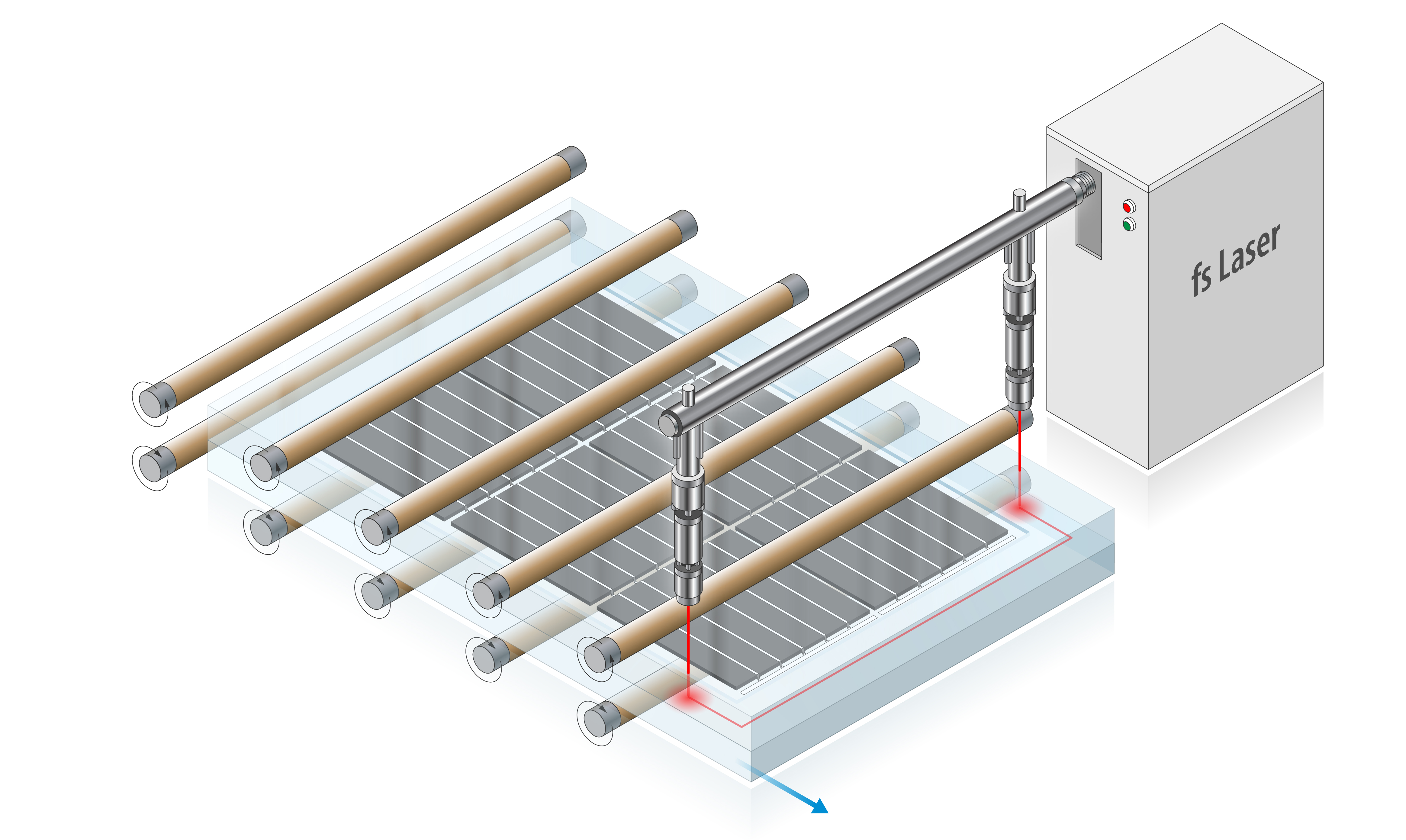 The glass weld can be used on any type of solar technology—silicon, perovskites, cadmium telluride—because the heat of the weld is confined to a few millimeters from the laser focus.