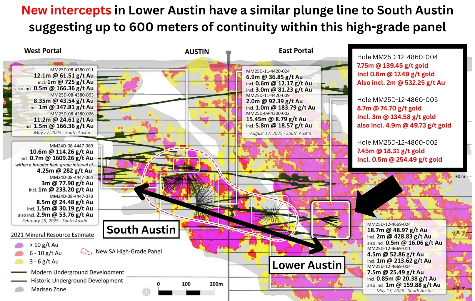 “We're excited to keep getting deeper at Madsen, because we believe this deposit has a lot more to give,” said Preston. “That's the context for the October 9, 2025 batch of drill results. We've hit a new high-grade pocket at Madsen, deeper in the Austin zone. It feels like the kind of jewelry box that Red Lake deposits have been known to offer up to the teams that put in the work in this district.”