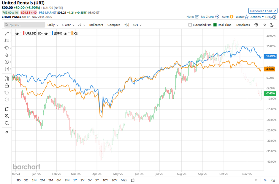 Despite reporting better-than-expected Q3 2025 revenue of $4.23 billion on Oct. 22, shares of URI tumbled 7.8% the next day as the company posted adjusted EPS of $11.70 missed expectations. Investor sentiment weakened further as inflation, elevated interest rates, and rising operating costs squeezed margins and reduced profitability.