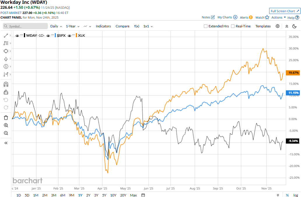 The company has significantly underperformed the broader market over the past year and in 2025. WDAY stock prices have plunged 15.4% over the past 52 weeks and approximately 12.2% on a YTD basis, compared to the S&P 500 Index’s ($SPX12% returns over the past year and 14% surge in 2025.