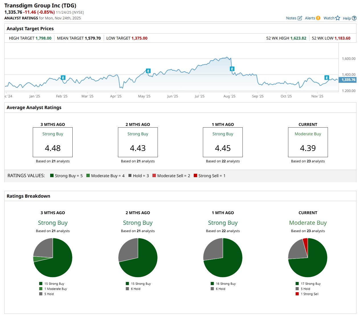 On Nov. 18, BNP Paribas Exane initiated coverage of TDG with an “Outperform” rating and $1,775 price target, indicating a 32.9% potential upside from the current levels.