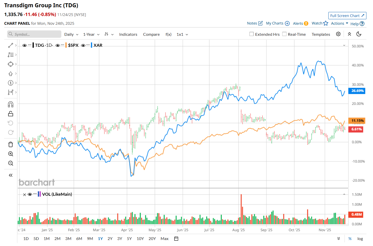 Shares of this aerospace and defense company have underperformed the broader market over the past 52 weeks. TDG has gained 6% over this time frame, while the broader S&P 500 Index ($SPX) has soared 11%. Moreover, on a YTD basis, the stock is up 5.4%, compared to SPX’s 14% return.