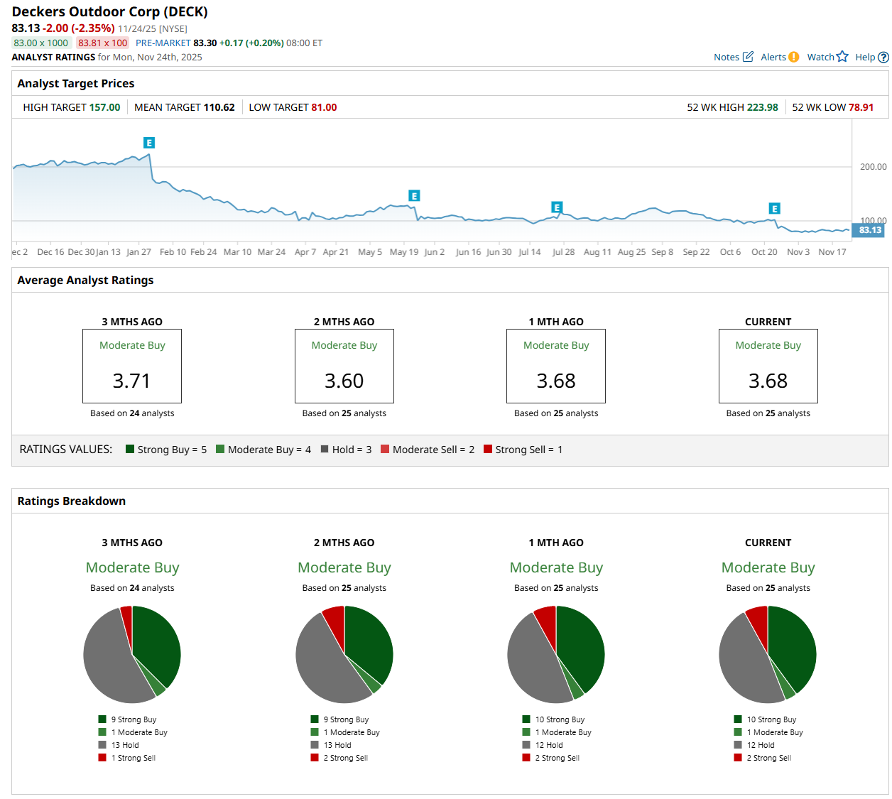 The mean price target of $110.62 represents a 33.1% premium from DECK’s current price levels, while the Street-high price target of $157 suggests an ambitious 88.9% potential upside from the current levels.