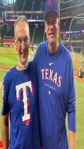 Mike Lotief with Tim Hyers, Hitting Coach of Texas Rangers during batting practice in 2023 when the Rangers won the WORLD SERIES