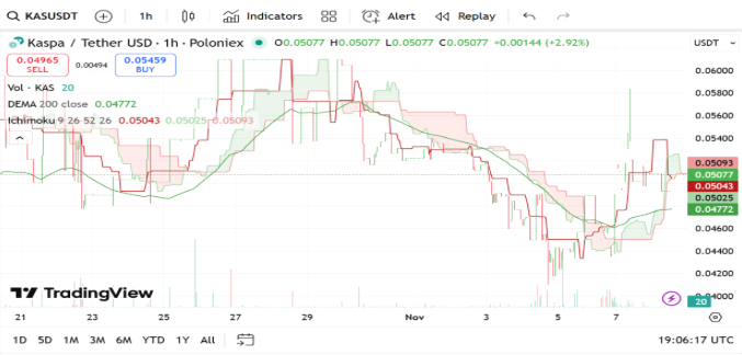 Kaspa (KAS) continues to gain attention as one of the top crypto picks under $1. The token currently trades at $0.05105, showing a slight 0.13% dip, while maintaining a market capitalization of $1.37 billion. Trading volume sits at $41.57 million, marking a 36.12% decline from the previous day.