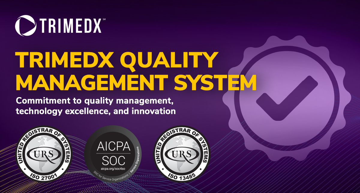 The ISO 27001 certification couples with TRIMEDX’s Service Organization Control (SOC) 2 Type 2 and ISO 13485:2016 certification (valid through Aug. 2024) to make up TRIMEDX’s Quality Management System covering MD QMS and Information Security Management System (ISMS) standards.