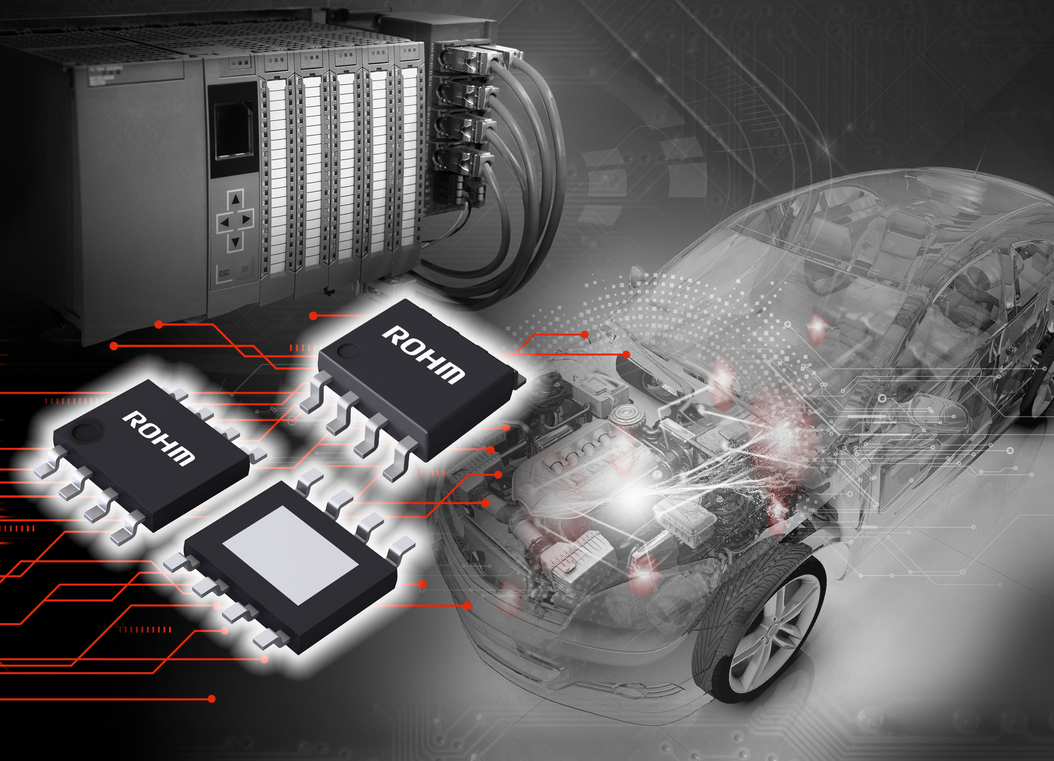 ROHM addressed these market needs early on by developing a dedicated smart power process in 2014. Bringing together innovation, power efficient technology, process optimization and analog design experience, allows ROHM to offer a broad lineup of high-performance products. The integrated over-temperature, over-current and over-voltage protection, built-in diagnostic features and micro-controller feedback grant enhanced performance and reliability, superior lifetime and reliability over discrete solutions.
