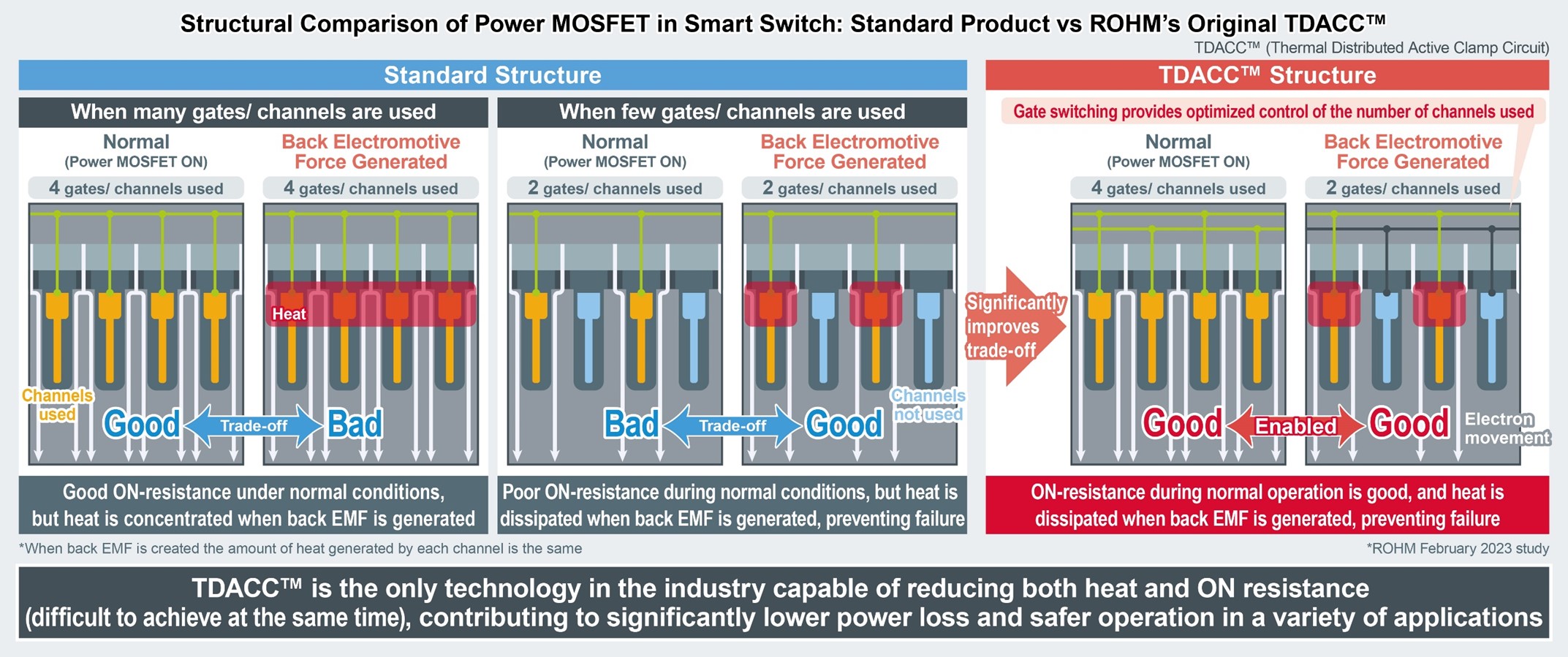 Taking advantage of the TDACC technology, ROHM will continue to develop intelligent power devices with lower ON resistance and a higher level of feature integration. This will allow ROHM to expand its product portfolio confirming its high-quality commitments towards customer needs with higher performance products, increased functionality, outstanding energy efficiency, cost reduction and higher safety.