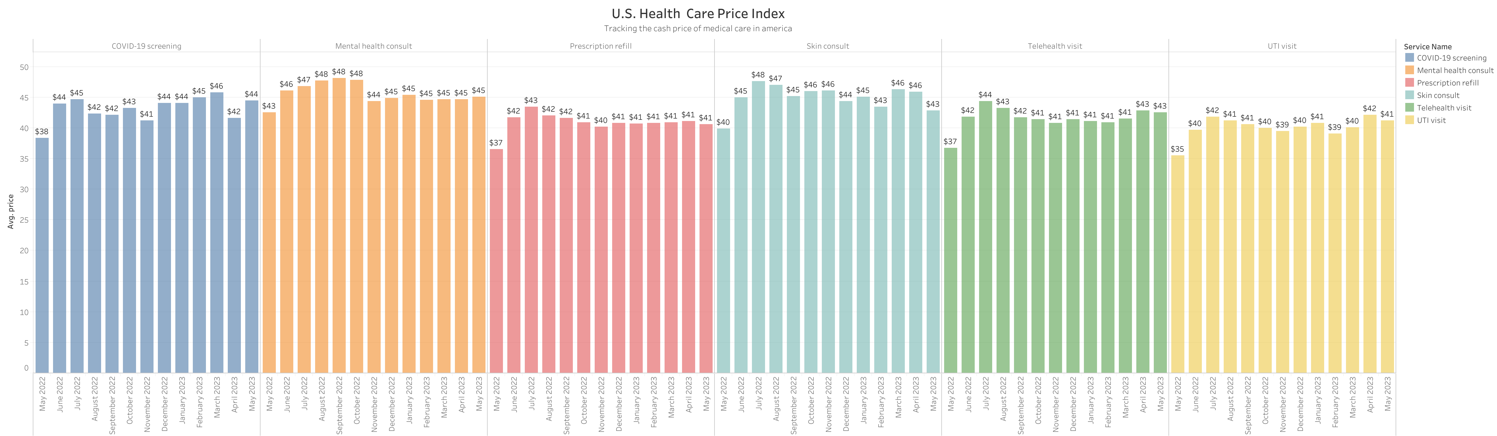 The USHPI, the first national resource to publicly document the price of cash-pay medical care in America, features pricing data for routine medical services in all 50 states – from primary care and mental health to women's health and more. In addition to regional and state comparisons, the USHPI tracks price variance and market trends on a monthly basis. The entire USHPI database of monthly cash prices can be found here: https://sesamecare.com/compare/ushpi