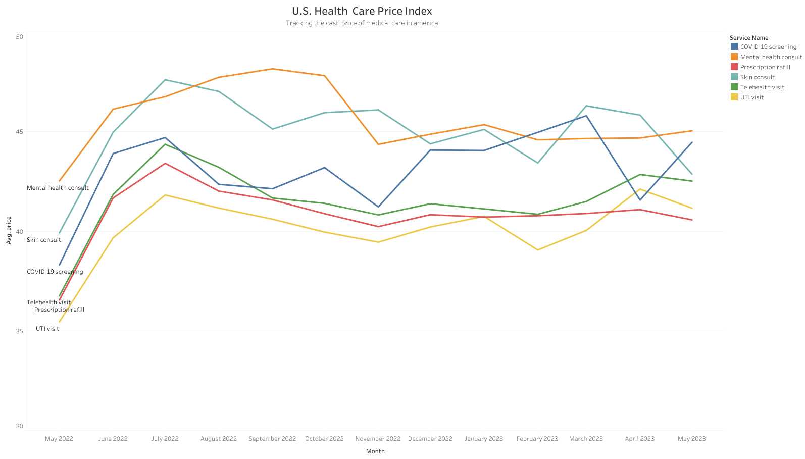The May 2023 USHPI found demand for cash-pay healthcare drove higher costs from a year ago across the most common visits: