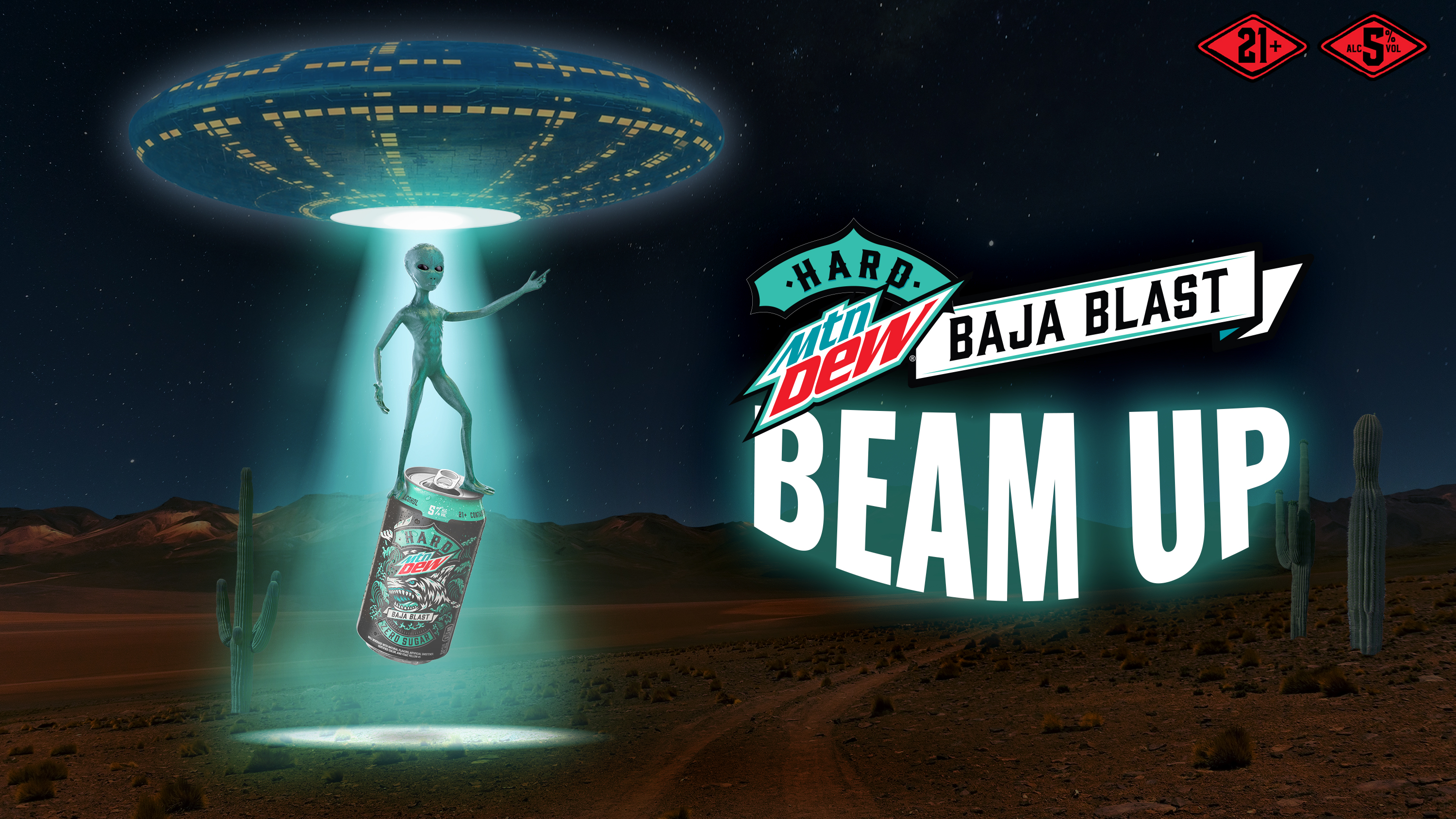 In honor of the HARD MTN DEW BAJA BLAST Mix Pack rolling out now and the expected extraterrestrial return to Earth on Alien Abduction Day, HARD MTN DEW is celebrating big by luring UFOs to the custom-built, alien friendly “HARD MTN DEW BAJA BLAST Beam Up” alien abduction site. Built in a remote area of the Arizona desert, the alien abduction site is near the home of one of the most witnessed and documented mass UFO sightings in modern history: The Phoenix Lights, and home to the state with some of the most reported sightings in the U.S., according to the National UFO Reporting Center.