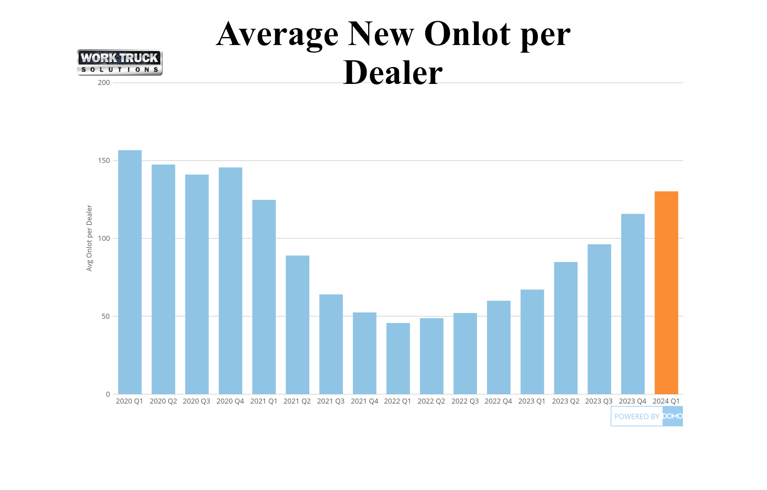 - Sales of used vehicles fell at an accelerated rate, with the average number of work trucks/vans moved per dealer decreasing 10.2% QoQ and 23.2% YoY.