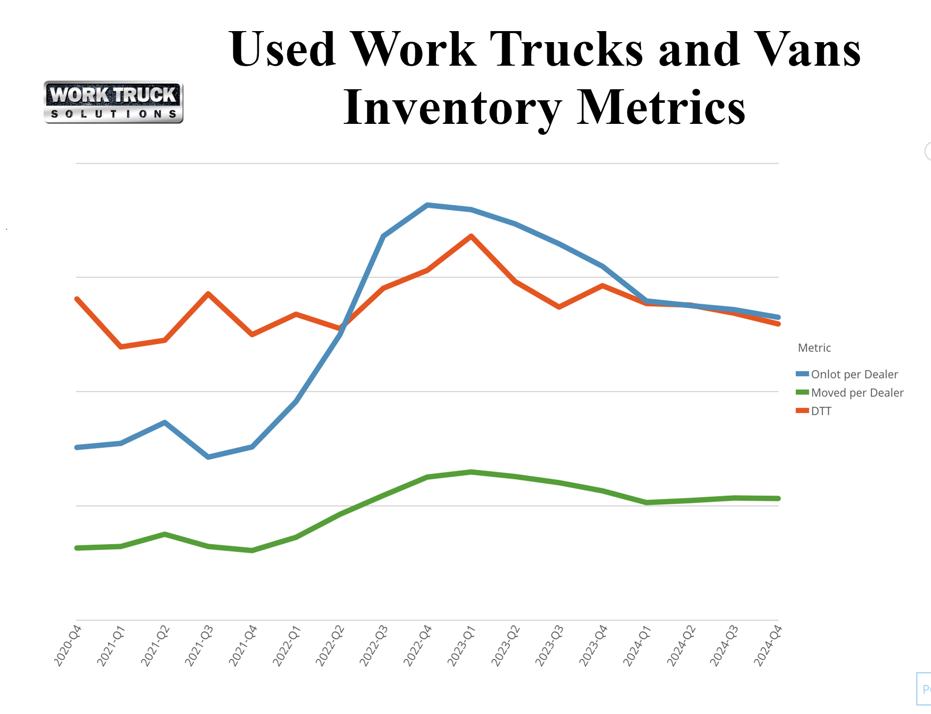 Although new vehicle sales are improving, it’s still too early in the vehicle life-cycle for used vehicle on-lot inventory to be increased by trade-ins. It’s likely that it will be some time before used on-lot numbers begin to rise. For commercial vehicle shoppers, the overall new vehicle trends suggest that the availability and prices of used inventory will continue to decline in 2025.