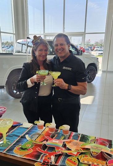 Tonia LaLonde and Paul LaFontaine celebrate their closing at Imlay City CDJR on Cinco de Mayo.